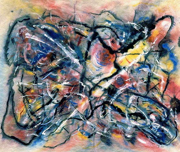 Untitled, Wayne Riggs © 1997, Watercolor, Gouache on Papyrus 35 cm. x 42 cm.(13 3/4 x 18 in) collection of the Artist.